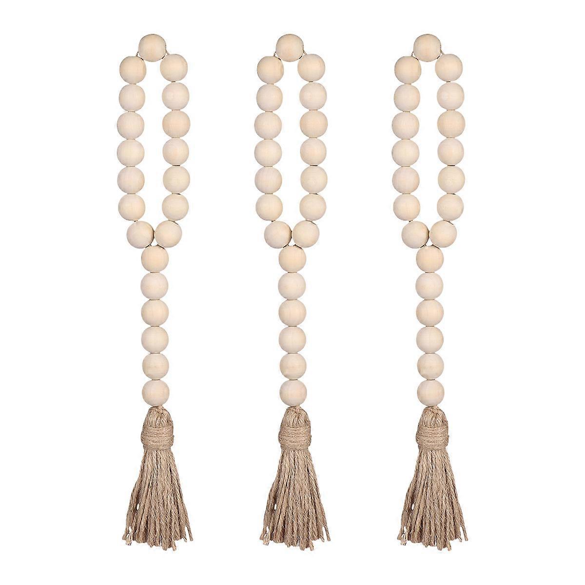 3pcs Nordic Style Nature Wood Beads String with Tassel Decorations for Home Car (Pattern 2)
