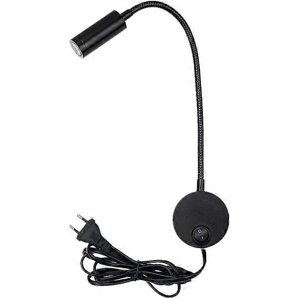 3W Plug-in Flexible Gooseneck Wall Lamp for Reading, Artwork and Accent Lighting - Wall Mounted Spotlight with On/Off Switch (Black)