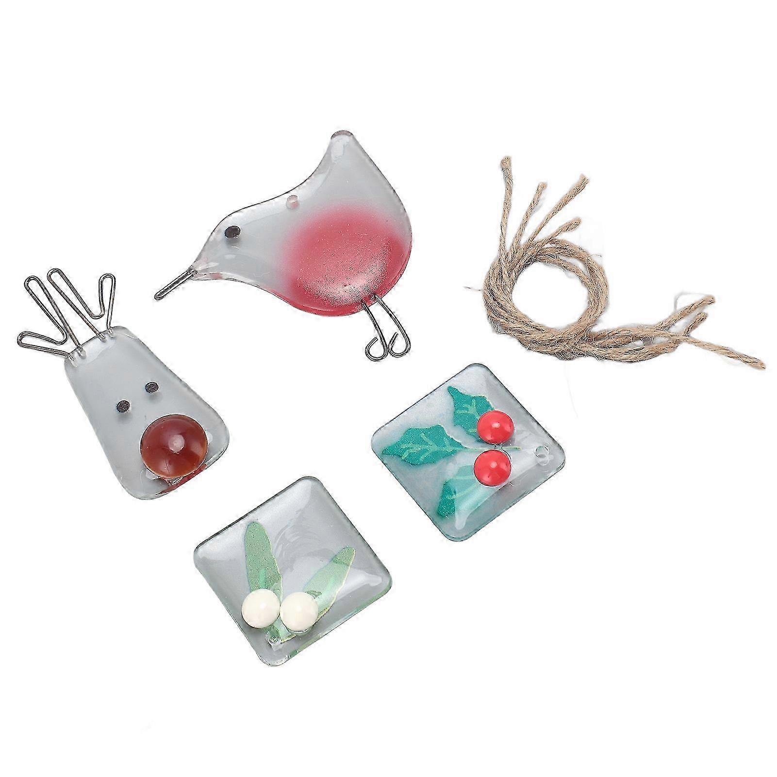 4pcs Resin Hanging Decoration - Bird Deer with Red & White Beads for Car and Home Decor