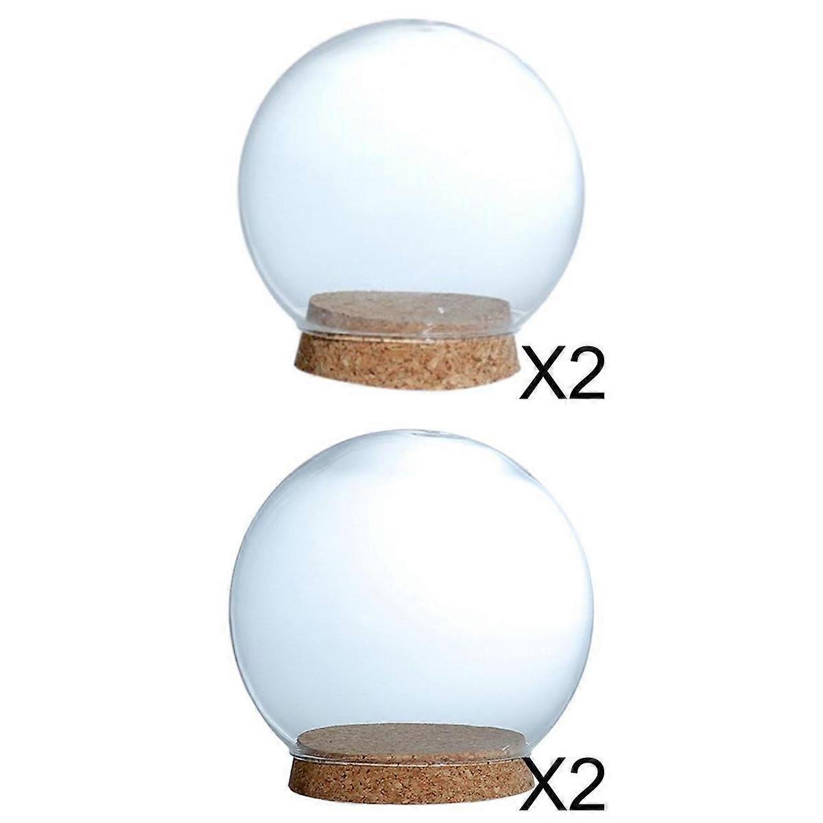 4Pack Glass Dome Bell Jar Terrarium With Wood Base Dry Flowers Tabletop Ornament