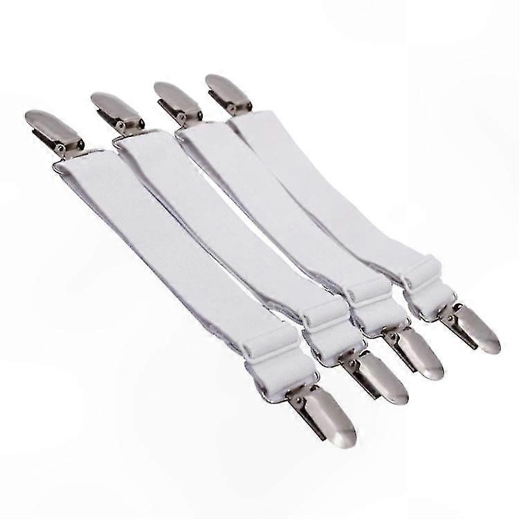 4-Pack Adjustable Elastic Straps for Bed Sheets, Heavy Duty Grippers to Secure Fitted and Flat Sheets on Mattresses, White