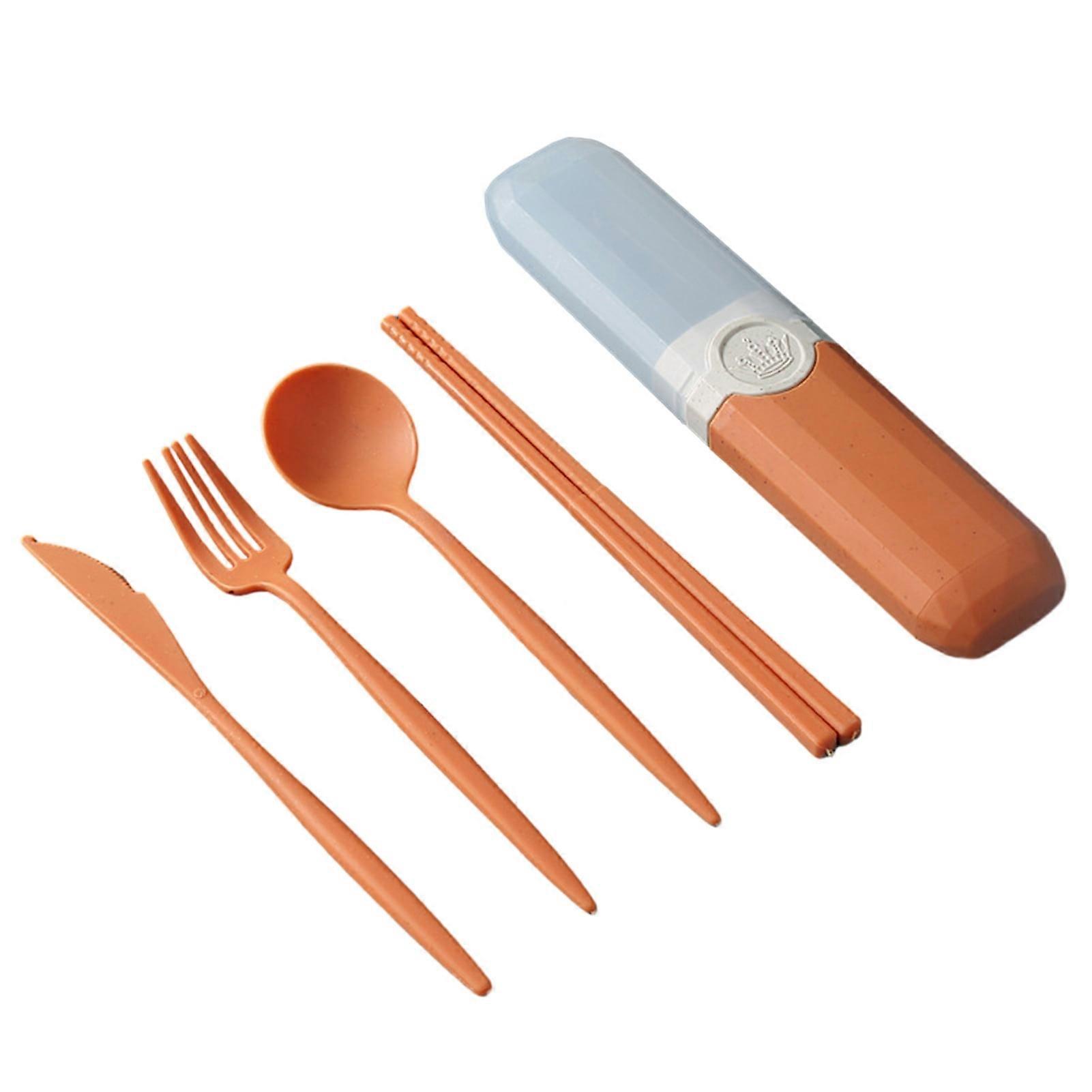 4 Pcs Dinnerware Set with Storage Box - Food Grade, High Temp Resistant, Solid Color, Smooth, No Deformation, Portable Fork Chopstick Spoon Cutter