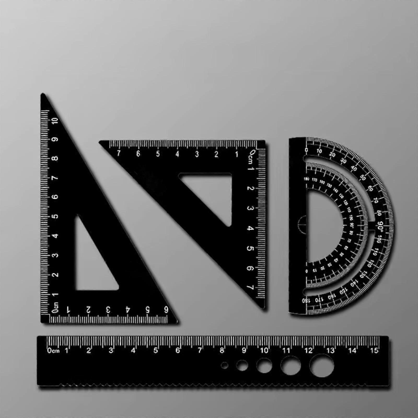 4 Pcs Metal Triangle Scale Ruler & Protractor Set, Aluminum Alloy Geometric Tools, Math Drafting Ruler for Engineers (Black)