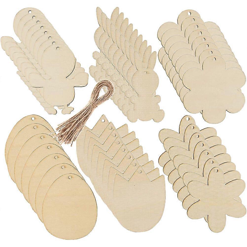 42Pcs Easter Wood Chips Unfinished Wood Easter Cutouts Easter Party Pendants DIY Wood Chips