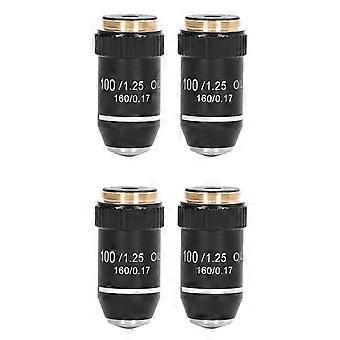 4pcs Biological Microscope Lens, 195 Achromatic Black Objective Lens 100X Oil High Power Objective Interface 20.2mm