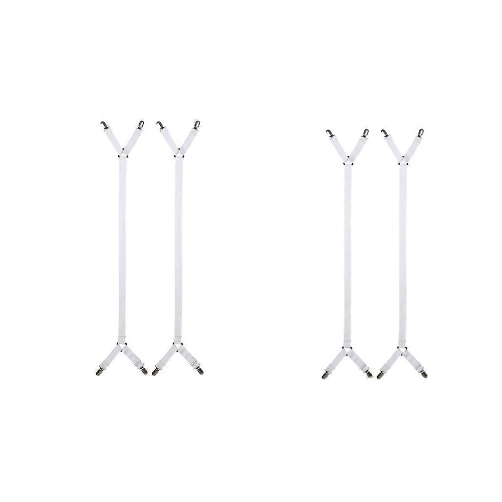 4x Bed Sheet Suspender Adjustable Fitted Sheet Strap with Gripper Clip White