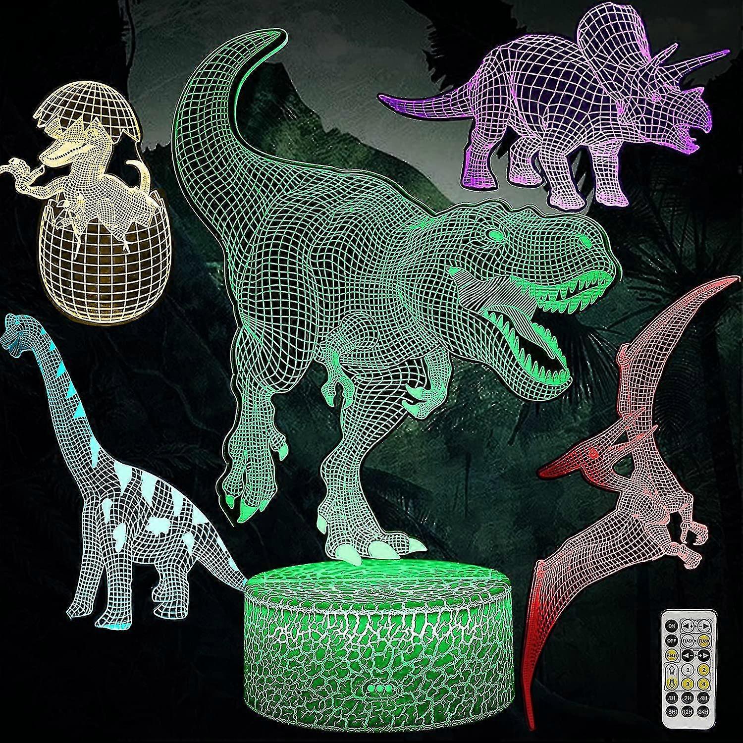 5 Patterns Dinosaur Night Light,3d Illusion Lamp With 7 Color Changing Remote Smart Touch,dinosaur Toy Gift For Birthday Christmas For Kids Childr