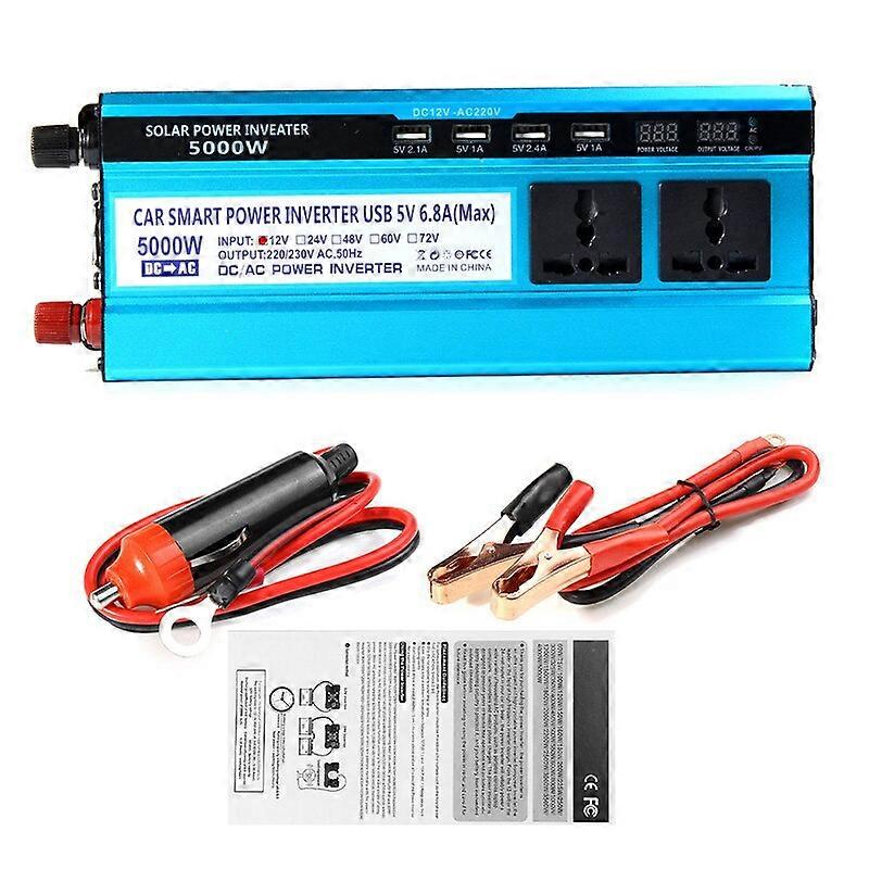 5000W Solar Inverter DC 12/24/48V To AC 220V Power Convertor Transformer Double LCD Display 4USB Modified Sine Wave Inversor