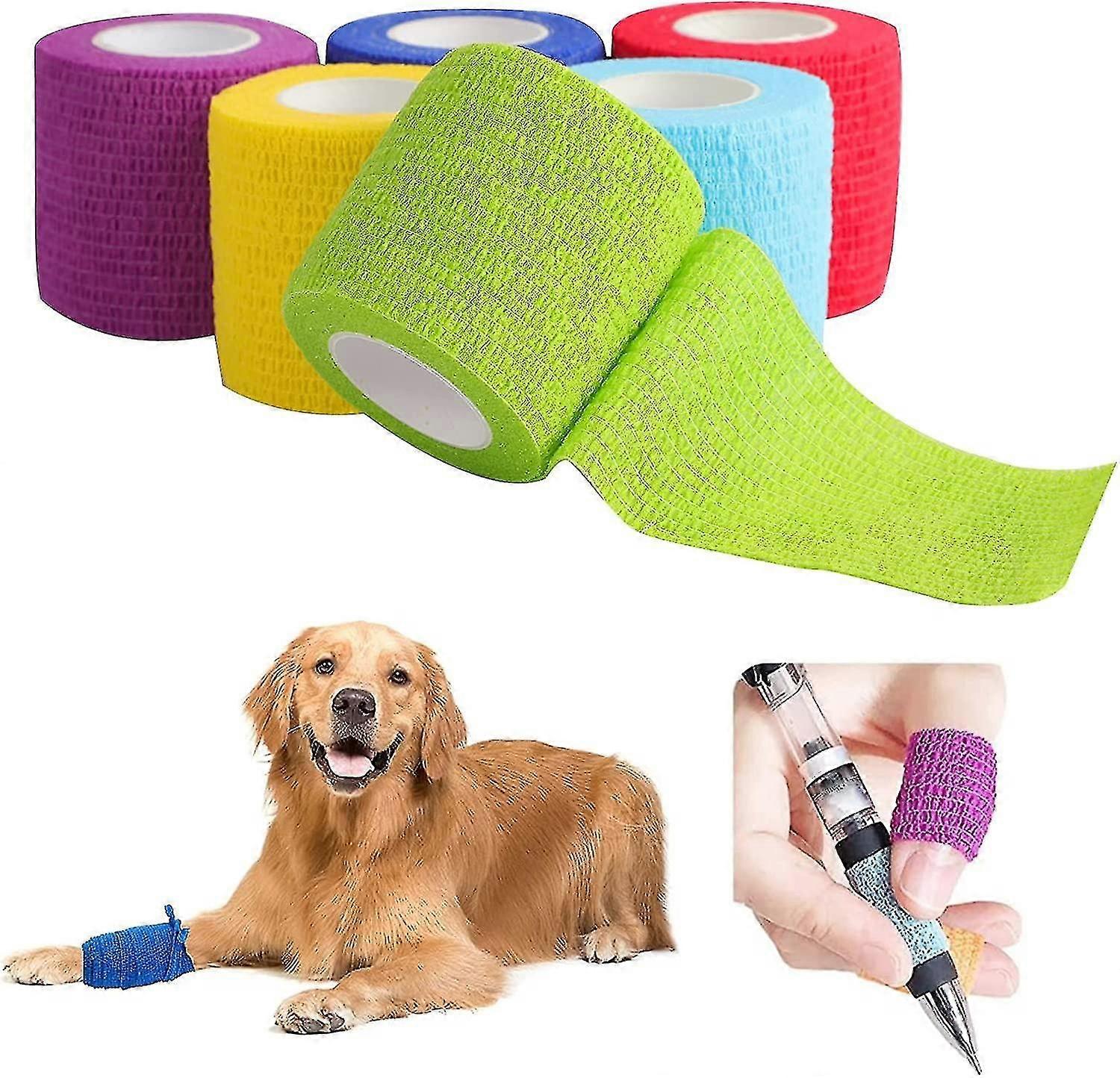 6 Rolls Vet Wrap Self Adherent Wrap, Vet Wrap For Dog Cohesive Compression Bandage (5.0cm*4.5m)