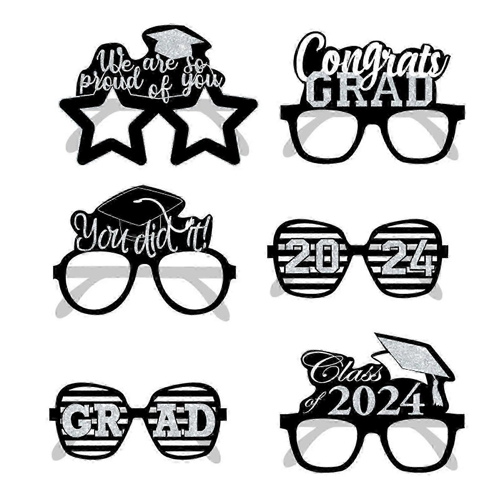 6 Pairs 2024 Graduation Glasses Set Sparkling Reusable Graduation Photo Booth Props Congrats Grad Class of 2024 Glasses Set