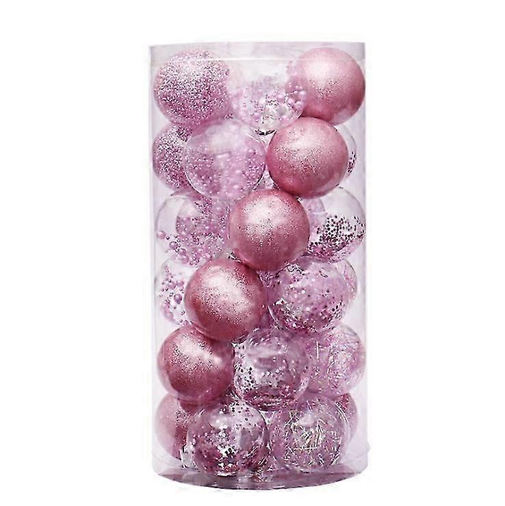 60mm Sparkling Color Painted Christmas Tree Ornaments and Hanging Baubles Set - 24pcsPink