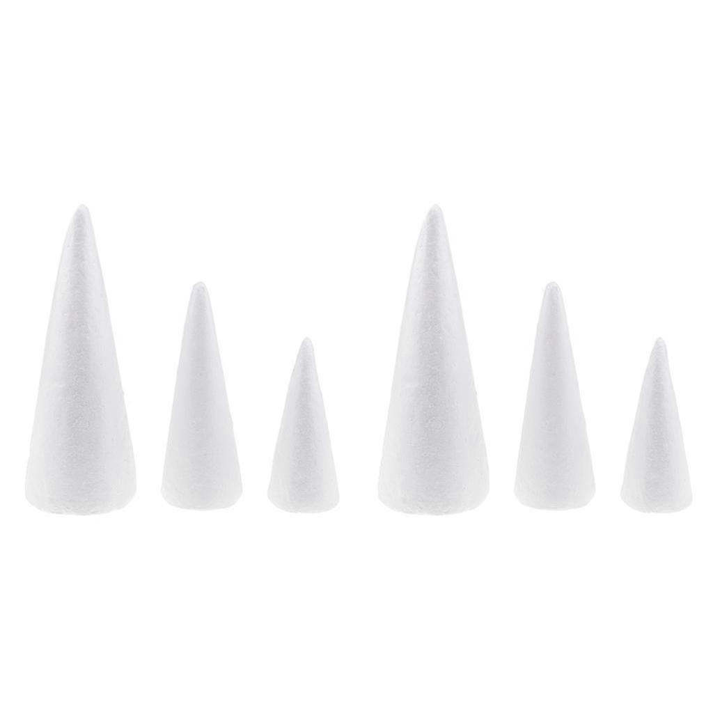 6x Cone Polystyrene Foam 3 Sizes for DIY Crafts Xmas Trees Decor