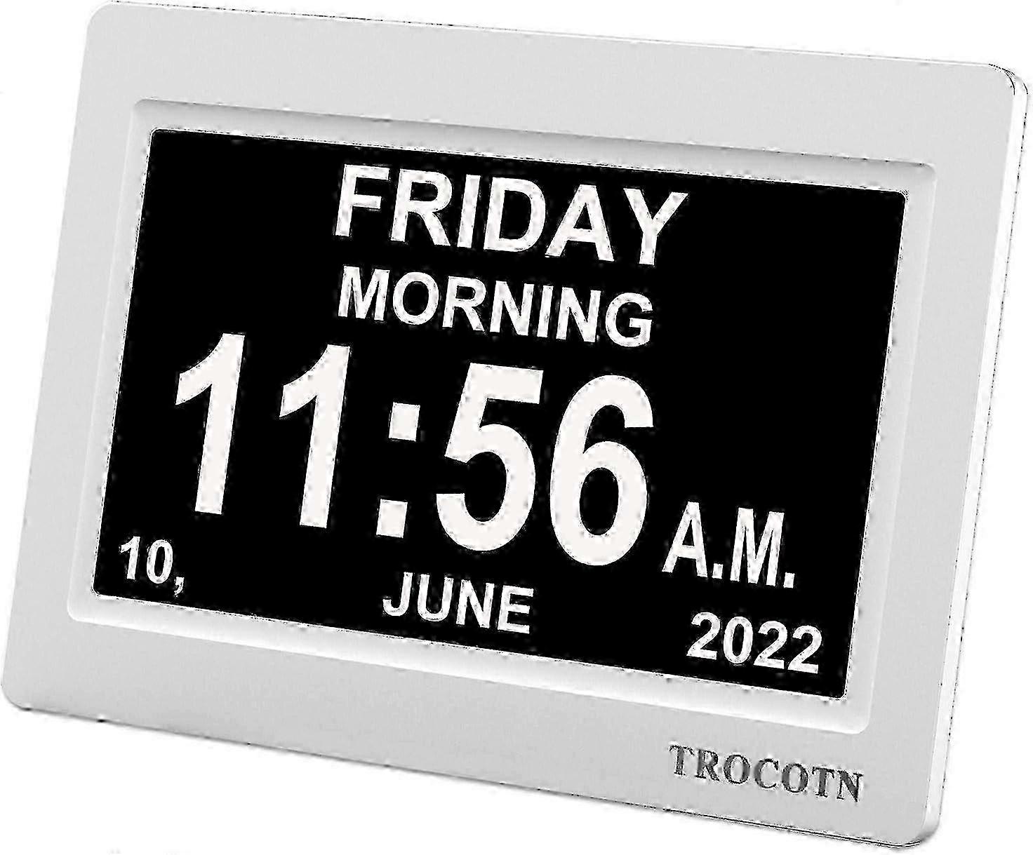 7 Inch White Digital Clock With Date, Day Of Week Calendar Display