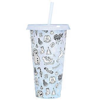 710ml Straw Cup with Lid Single-layer Christmas Magical Color Changing on Cold Cup for Trip
