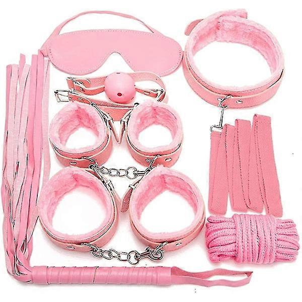 7pcs/set Leather Bodaged Kit Adlt Explay Hndcffs/whps/ball Gg/rope/collr Bdm