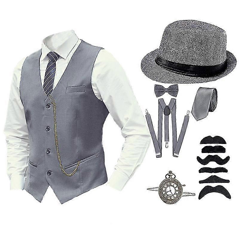 8 Pcs Mens 1920s Gatsby Gangster Costume With Accessories Halloween Cosplay Carnival Party Costumes