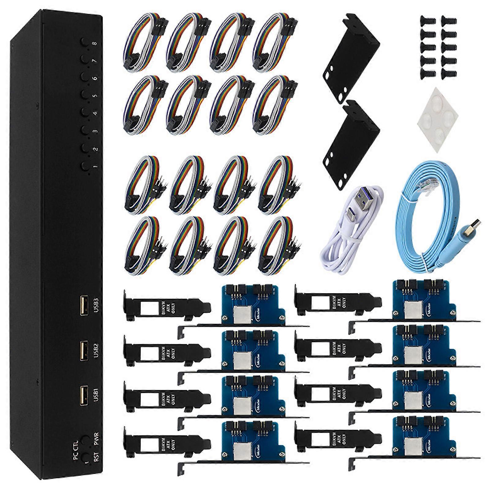 8 Port Video KVM Controller Computer Power Management 8 Host to Share Input USB Mouse Keyboards 1080P@60Hz Display Multicolor
