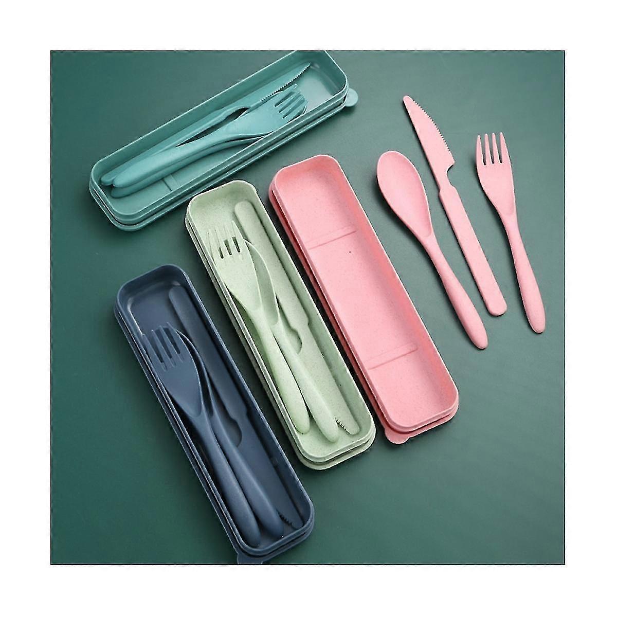 8 Sets Wheat Straw Cutlery, Reusable Utensil Set With Case, Spoon Knife Fork