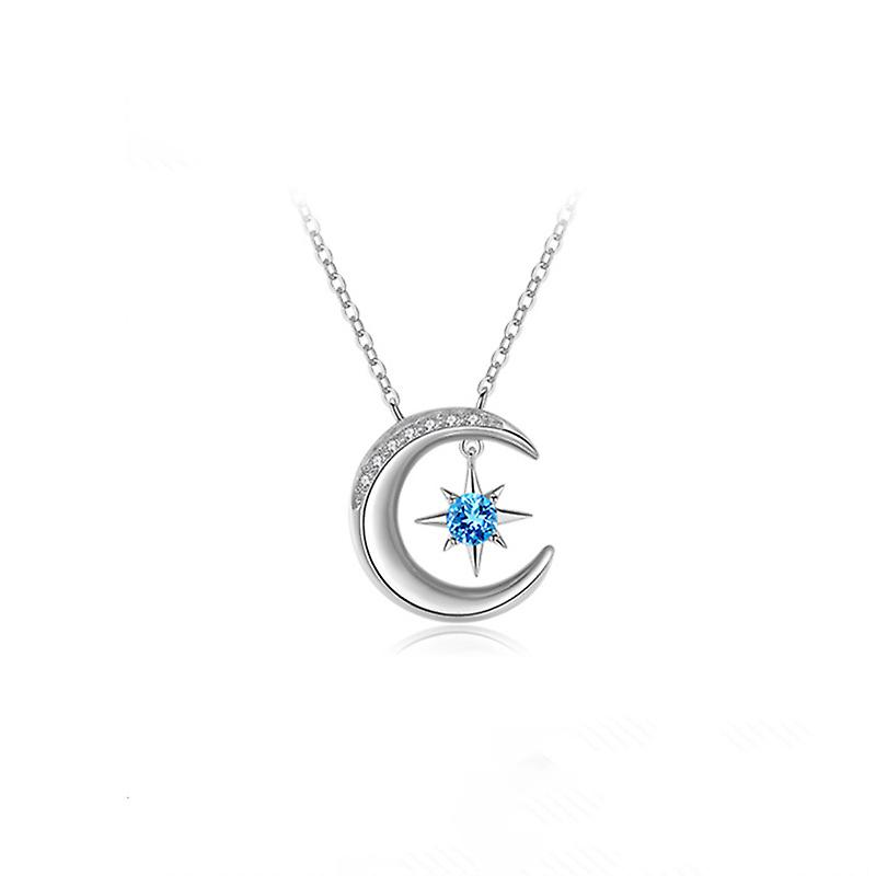 925 Silver Silver Star Moon Necklace