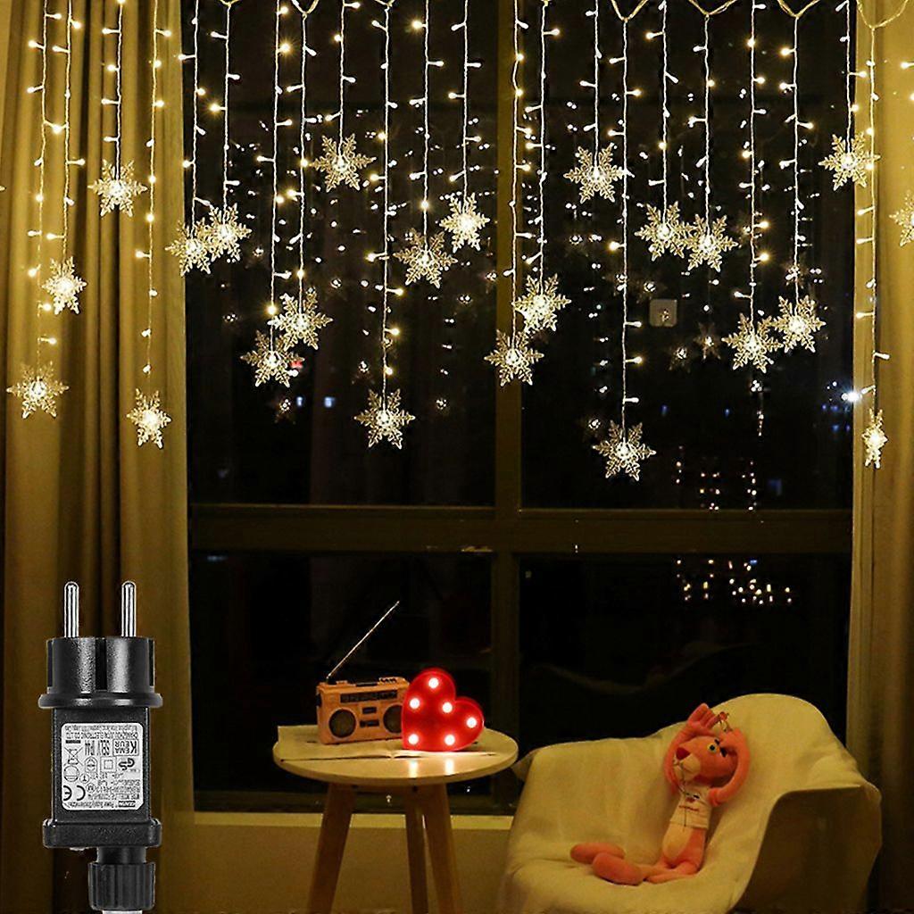 94 LED Snowflake Fairy Lights 31V Warm White Waterproof 8 Light Modes Light Curtain with Timer Indoor Outdoor Window Christmas Decoration