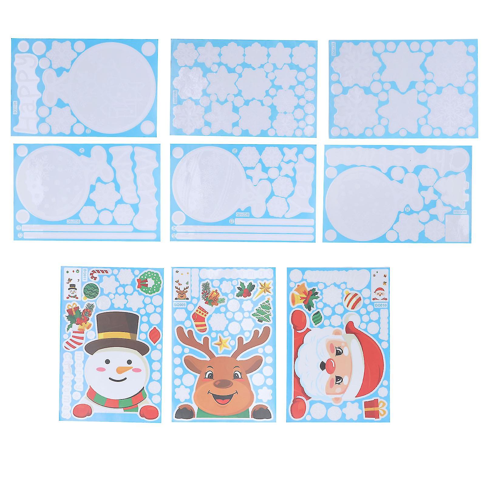 9Pcs Christmas Stickers Cute Patterns Simple Operation Environmentally Friendly Window Decals for Home Decoration
