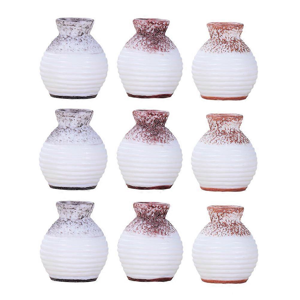 9pcs Mini Vase Decorations Resin Simulation Vase Ornaments Model Adornments