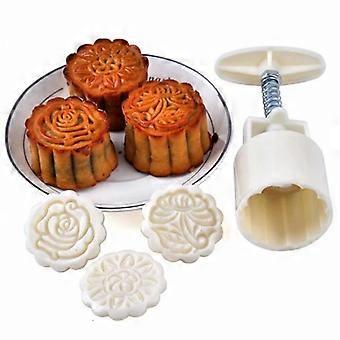 A set of 4 moon cake molds, 12 different modes, white