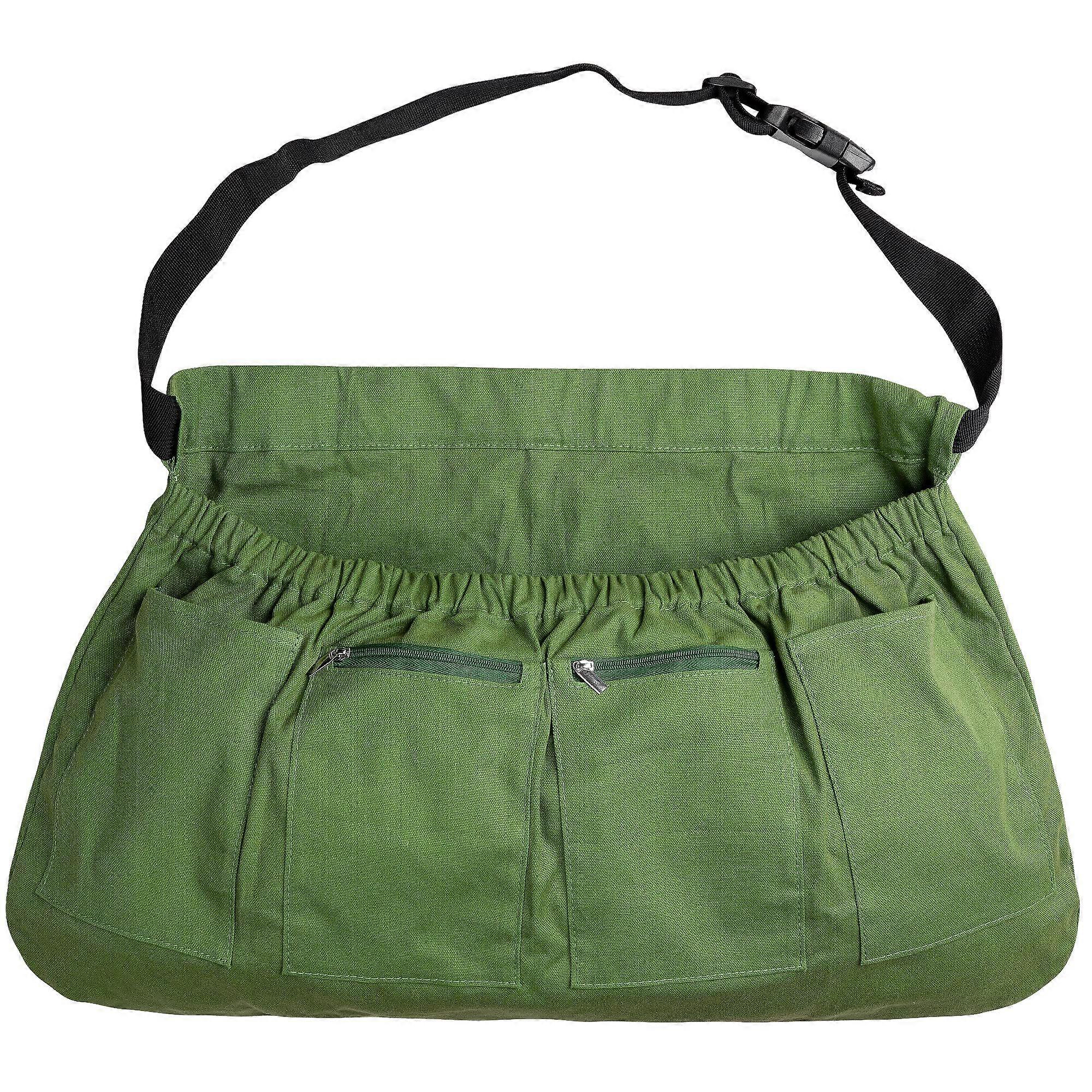 Adjustable Harvest Apron with 4 Large Pockets for Fruit Picking, Weeding and Gardening Tasks, Olive Green.