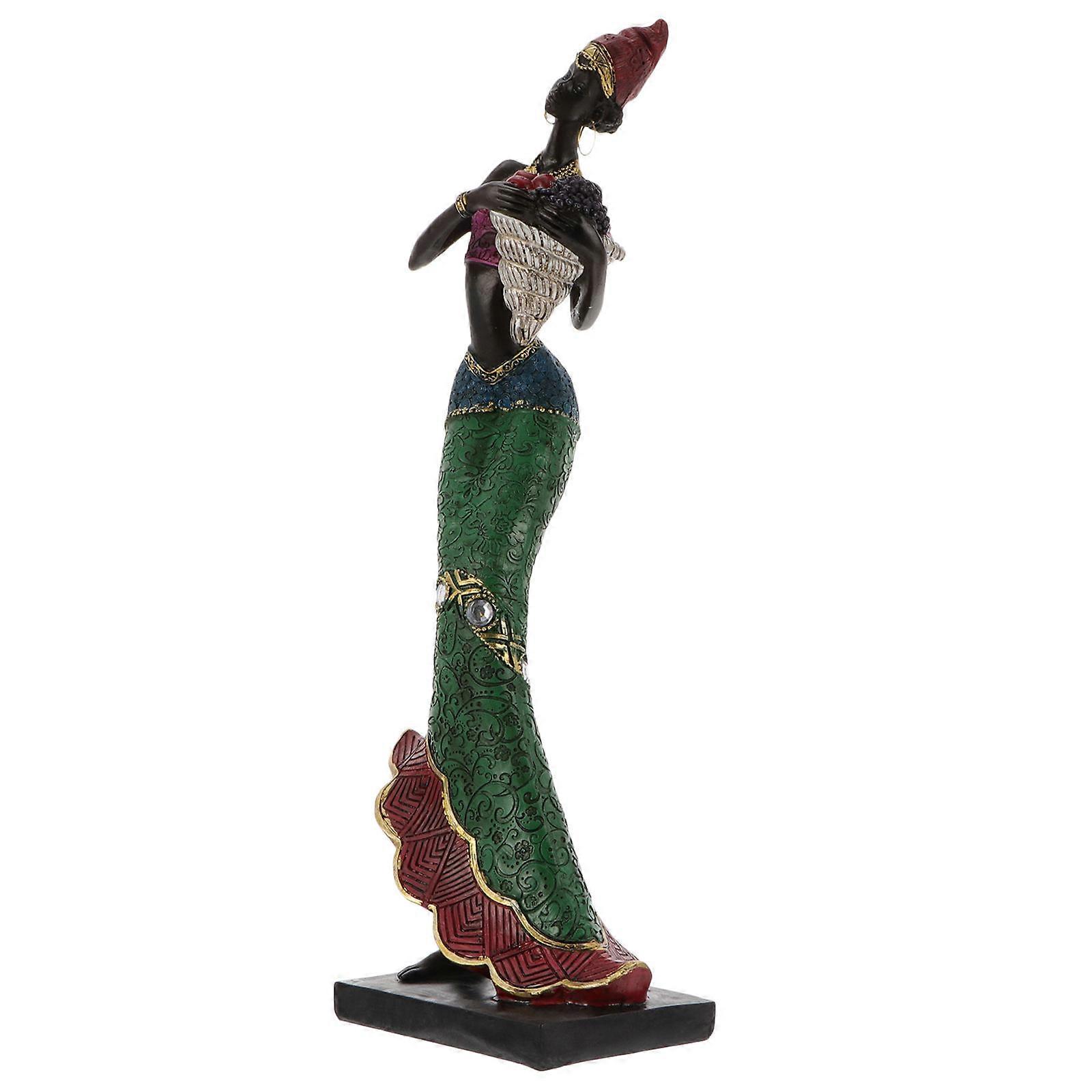 African Statue Resin Artwork Accent for Desktop Decoration Multi Color 1Pc