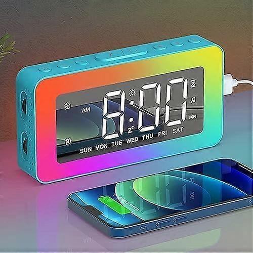 Alarm Clock for Kids, Digital Clock with 8 RGB Night Lights, LED Display Mirror Clock, Dual Alarms, Snooze, Dimmable Brightness, Timer, USB Port, 8 Sl