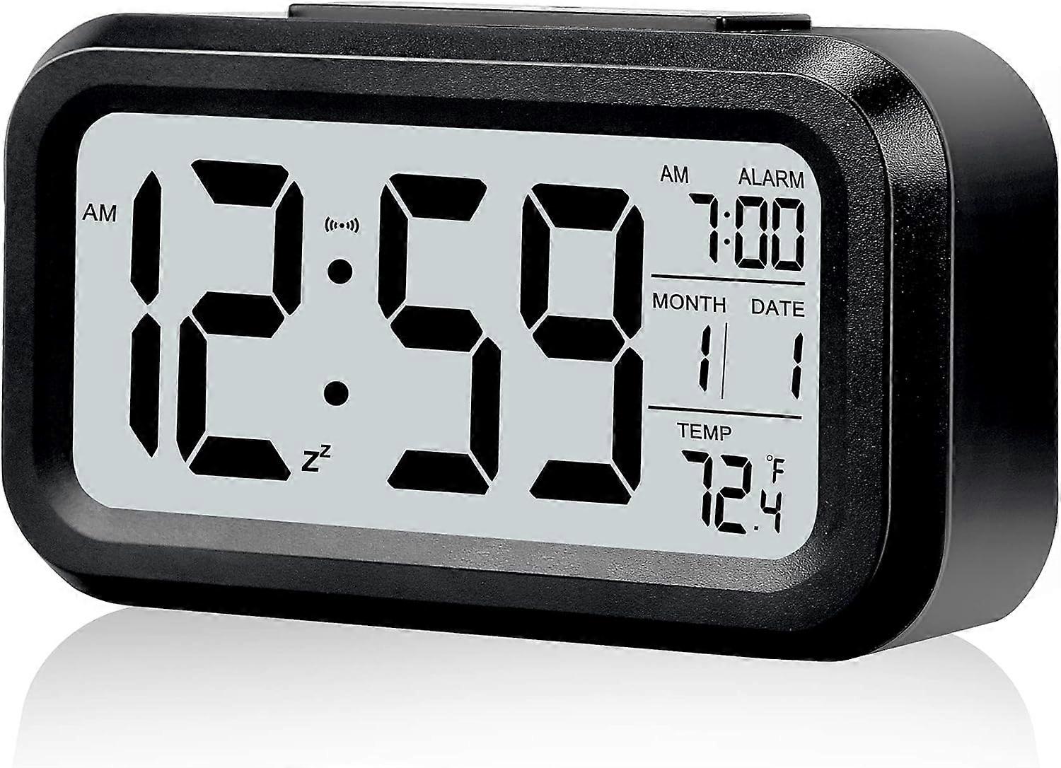 Alarm Clock, Small Digital Alarm Clock, 5.1" LCD Screen with Snooze Date Calendar, Temperature Alarm Display, Bedside Easy to Install (Black)