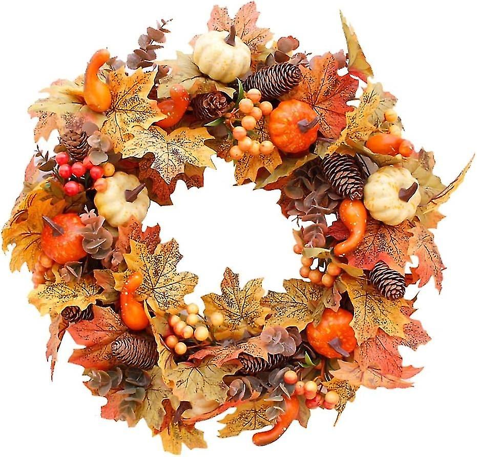 Artificial Fall Wreath, Front Door Wreath, Christmas Wreath with Pumpkin Maple Leaves and Red Berrie