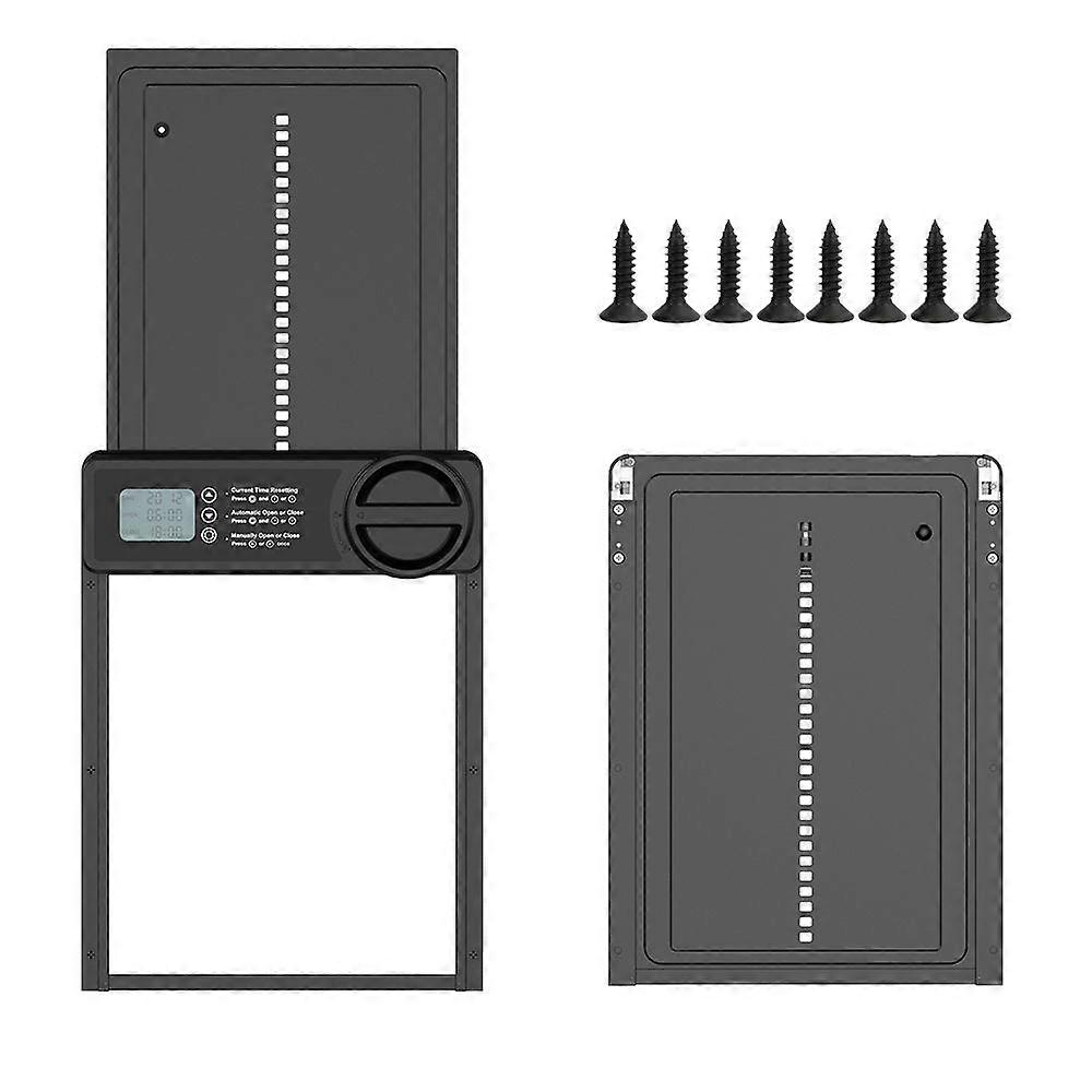 Easy installationThe automatic chicken coop door with integrated LCD screen allows simple and precise adjustment of opening and closing times.It is very simple to install, takes only 10 minutes and does not require any complicated electrical installation.Precise Time ModeOur product features an accurate timer mode that works reliably in all weather conditions, avoiding issues related to light sensor instability that results in random activation or deactivation.This guarantees simple and efficient use.MAXIMUM WEATHER RESISTANCE Discover our premium automatic chicken coop doors, made from sturdy aluminum that resists corrosion and extreme weather conditions.Equipped with an advanced 2024 motor, it operates reliably in the range of -15 to 55, providing excellent performance even in the most extreme conditions.Safety MechanismThe built-in sensor detects the presence of obstacles in the door area and immediately interrupts the closing process to prevent chickens from being injured and ensure their safety.Battery PoweredEnjoy a battery-powered chicken coop door with reliable performance that is not affected by weather conditions.Easy to maintain, it runs for up to six months on three AA batteries (not included).Its battery compartment is designed for quick, tool-free replacement, allowing battery replacement in less than a minute.