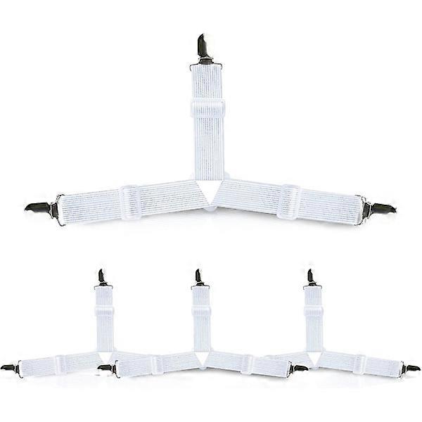 Bed Sheet Holders, Adjustable Elastic Sheet Straps and Non-Slip Iron Clips, Sheet Fasteners to Keep Sheets Flat, Set of 4, White
