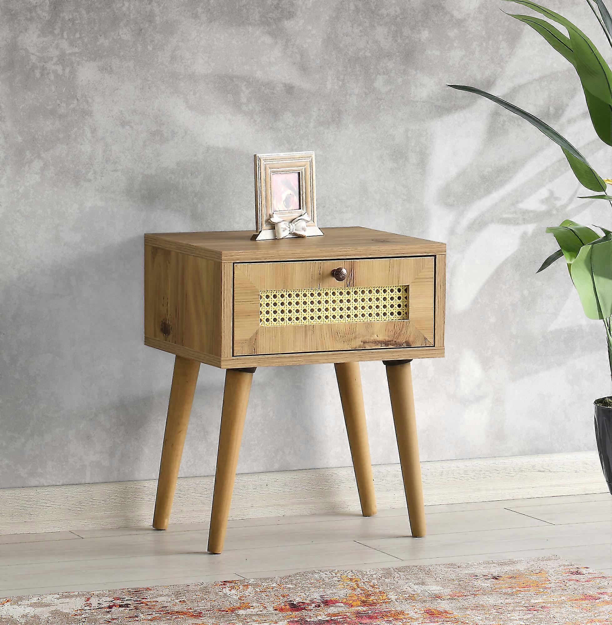 Med sin fantastiska ekfärg och unika design är vårt nattduksbord det perfekta komplementet till alla sovrum. Den 100 % melaminbelagda spånskivans konstruktion säkerställer hållbarhet och livslängd, medan träbenen ger en touch av elegans och sofistikering. Detta rustika nattduksbord är inte bara en möbel; det är ett uttryck för stil och funktionalitet.