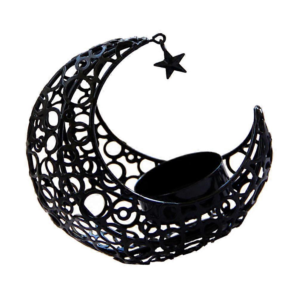 Black Metal Moon Modeling Candle Holder for Home Decor with Hollow Design and Build 6.5 Inches
