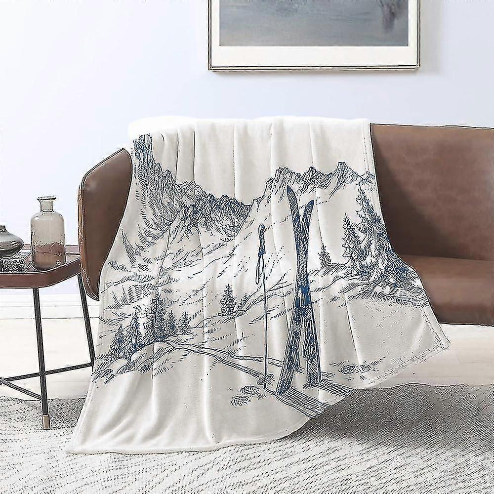 Blanket Flannel Blankets,sketchy Graphic Of A Downhill With Ski Elements In Snow Relax Calm View,throws For Sofa Fluffy Blanket Bed Throw F Bedroom,co