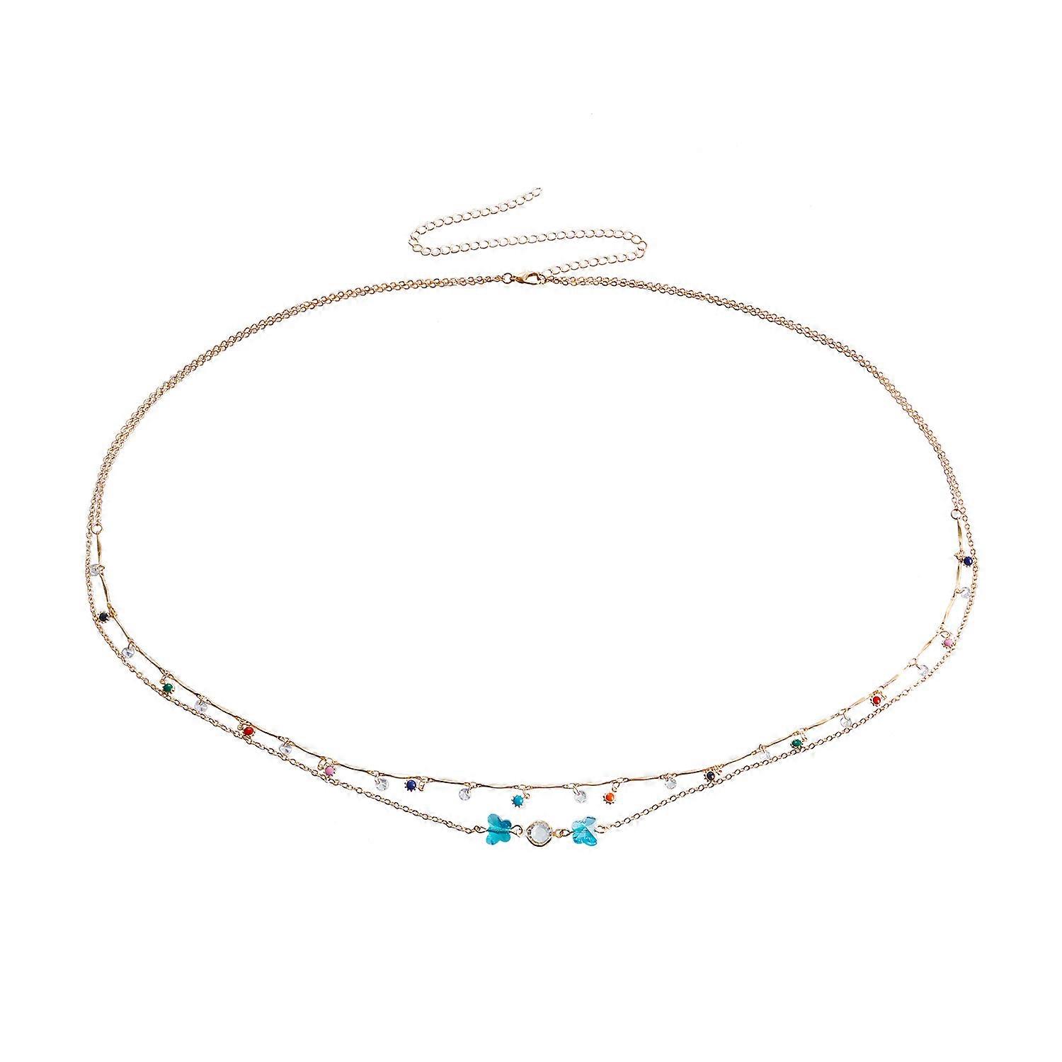 Body Chain, Double Layer Handmade Hip Hop Adjustable Colorful Dripping Oil Water Drop Trendy Waist Chain