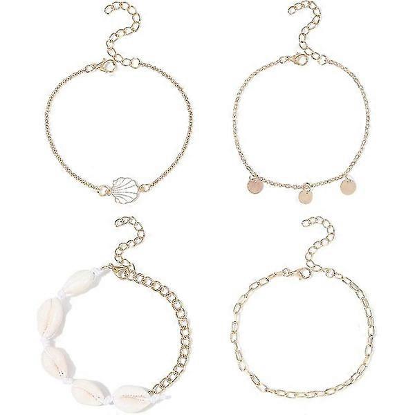 Boho Seashell Layered Anklet Gold Sequins Beach Scallop Foot Chain