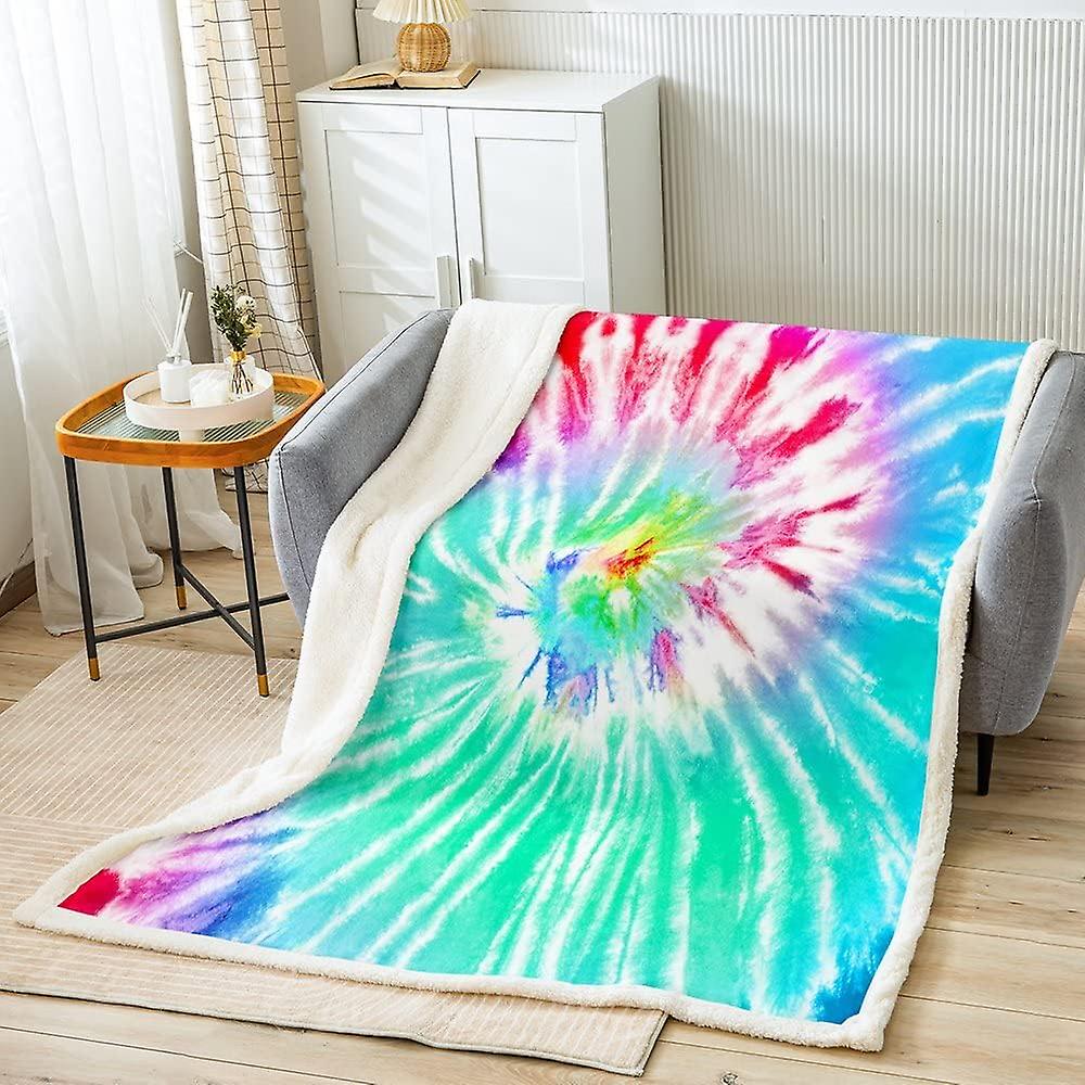 Boho Tie Dye Fleece Throw Blanket for Bed Sofa Hippie Tie Dyed Plush Blanketative Psychedelic Green Red Sherpa Blanket Bohemian Gypsy Warm Fuzzy Blank