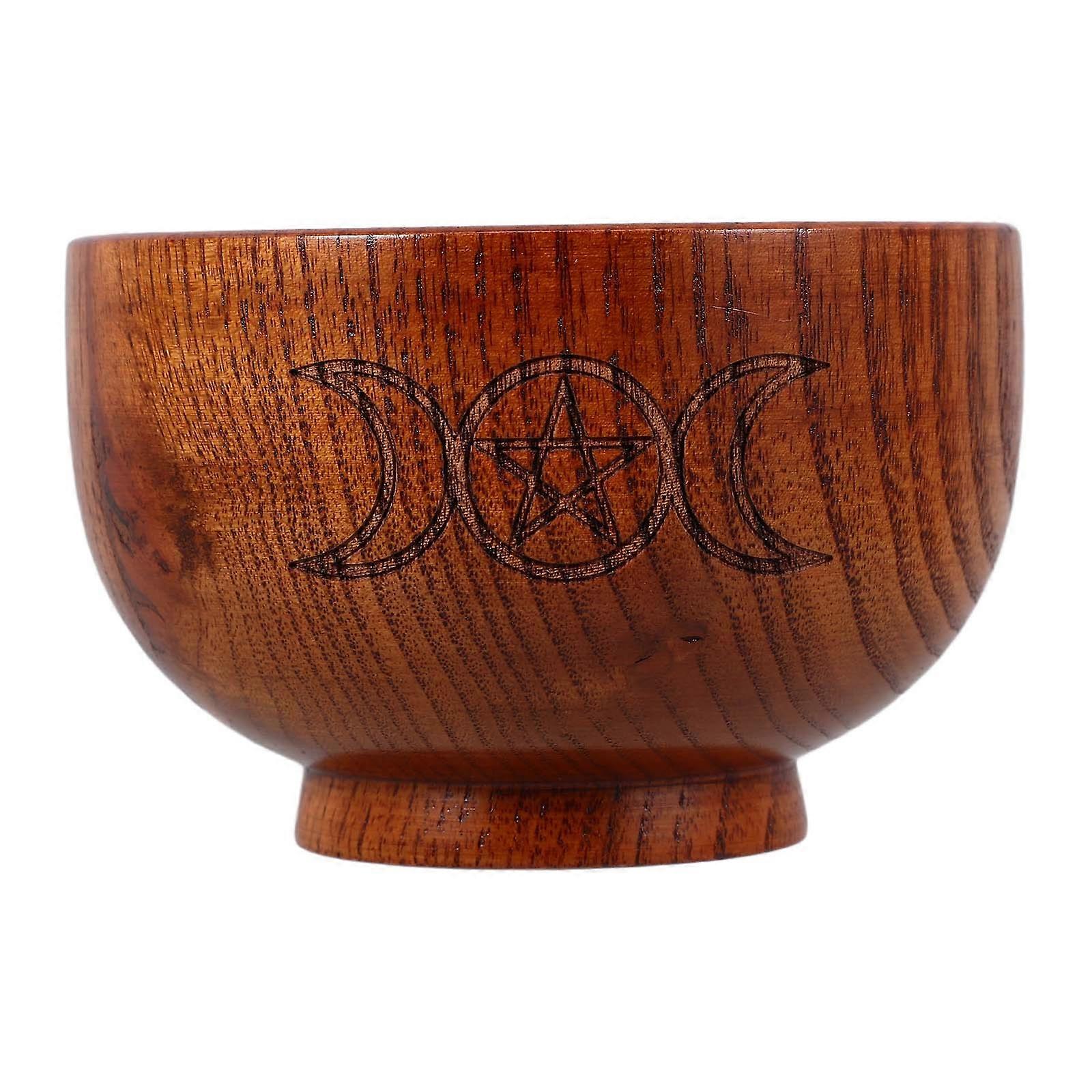 Brown Wooden Bowl with Moon and Pentagram Design for Storage Use Pentacle Shape Adds Mystical Touch 7.5 Inches Diameter