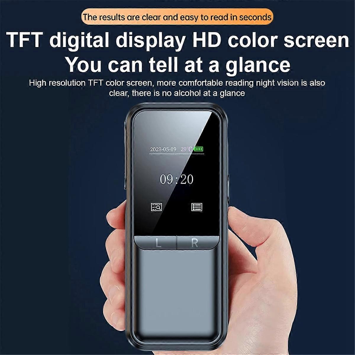 1. Portable Design with High Accuracy: Featuring a portable design and utilizing high-precision semiconductor technology, the alcohol breathalyzer offers the most accurate readings and alerts users when excessive alcohol levels are detected, making it ideal for on-the-go testing. 2. Two detection modes can meet the needs: the Precise mode requires the installation of a mouthpiece, and the detection is more accurate; the Quick check does not require a mouthpiece, which is suitable for multiple people to quickly check whether there is alcohol. 3. Equipped with smart chips and high-sensitivity sensors, the measurement is more accurate. 4. USB rechargeable lithium battery,800mAh the high-capacity lithium battery lasts long on a full charge. 5. Upgraded alcohol tester has additional memory function to store up to 50 groups of test results. Hygienic with Interchangeable Mouthpieces: The portable breathalyzer features washable and reusable interchangeable mouthpieces, making it convenient for multiple users while promoting . This allows for easy and responsible testing of your alcohol levels, keeping everyone safe. Product Name: High precision and rapid alcohol testing instrument for troubleshooting Product model: C02 Charging input: 5V/1A Built in battery: Lithium battery 800mAh Temperature range for use: -5 -45 Storage temperature range: -20 -50 Sensor type: Electrochemical alcohol sensor Measurement mode: Precision mode+Fast mode Test records: 50 records Measurement range: 0-400mg/100mL Display screen: TFT display screen Colour:Black Material:ABS Package Contents: 1 x Alcohol Breathalyzer 1 x Data Cable 5 x Mouthpiece Only the above package content, other products are not included. Note: Light reflection and different displays may cause the color of the item in the picture a little different from the real thing. The measurement allowed error is +/- 1-3cm.
