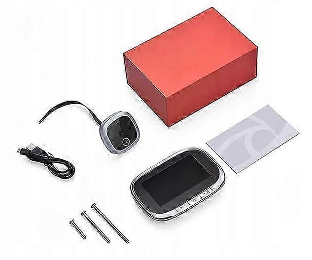 Excellent workmanship and modern design Built-in PIR sensor for motion detection After motion detection, it is possible to take a photo or record 10s video footage Huge color display LCD 4.3" Super wide viewing angle 120 degrees Colorful kamera CCD with night mode Built-in 2 infrared LEDs - kamera sees in total darkness The doorbell function - after each click on the doorbell in the external module - the internal module will play the sound and the viewfinder take a photo and remember it in the device, or record a 10s video. Replaceable memory - support for memory cards up to 32GB microSD Power supply BUILT-IN BATTERY 2400mAh (charging cable included) The viewfinder fits 99% of available doors with a width of 35-120mm Simple and non-invasive installation The device is very easy to install - in just 4 quick steps everyone will be able to mount them at home.