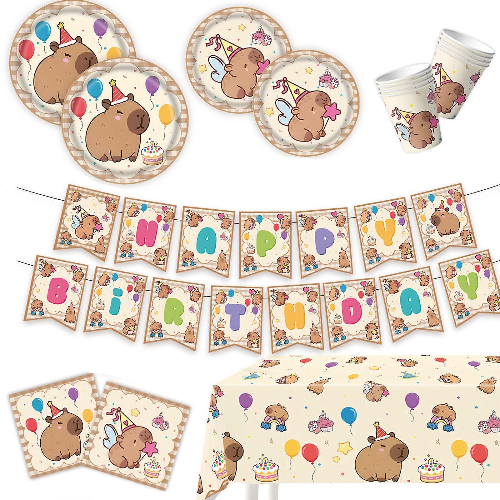 Capybara Printed Cups Decorative Hanging Flags Tablecloth Dishes Biodegradable Party Essential Easy Install Accessory Multicolor