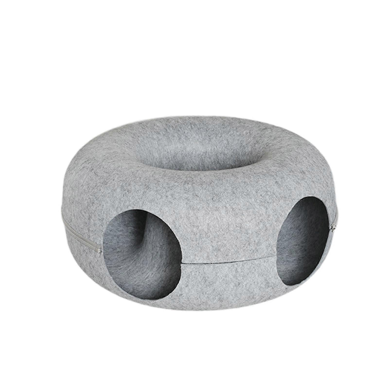 Description: 【Tunnel Rest and Play】: A cat tunnel is a combination of cat bed and donut tunnel to provide hours of exercise, play, rest, hideaway, self amusement and more 【Stable Material】: This kitten play tunnel bed is made of felt material, very soft, comfortable, breathable, ensuring it maintains its shape and withstands regular use 【Zipper Design】: 2 in 1 Cat Tunnel Bed can be used as a cat bed or hiding place, zipper design can be shaped into circular and semi circle shape, suitable for all seasons, stylish and functionality 【Interactive Play】: Cat are attracted to interesting tunnels, peephole window offer the most interactive fun with owners, and truly a great way to encourage daily exercise, and keep active. 【All Ages Cats】: Cat Tunnel Toy Tube  is suitable for cats,  kittens, ferrets, hedgehogs, chinchillas, small animals, etc. Specification: Material: Felt   Size Chart: 50cmx50cmx20cm/19.69inchx19.69inchx7.87inch Package Includes: 1 Cat Tunnel Bed