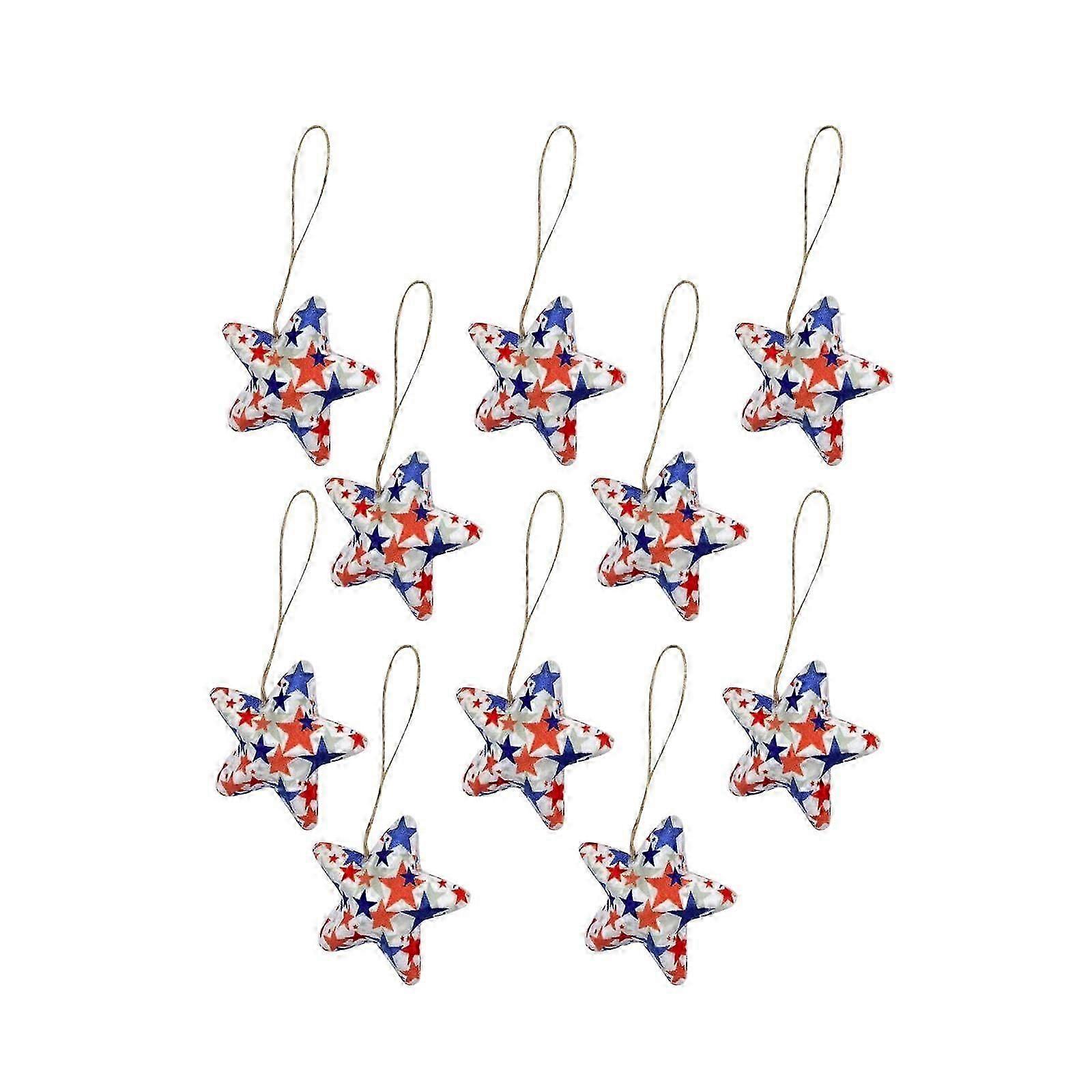 Chmadoxn Memorial Day Decorations, 5-Pointed Star Hanging Ornaments Compatible with 4th of July & Patriotic Events, Red Blue American Flag Tree Decor