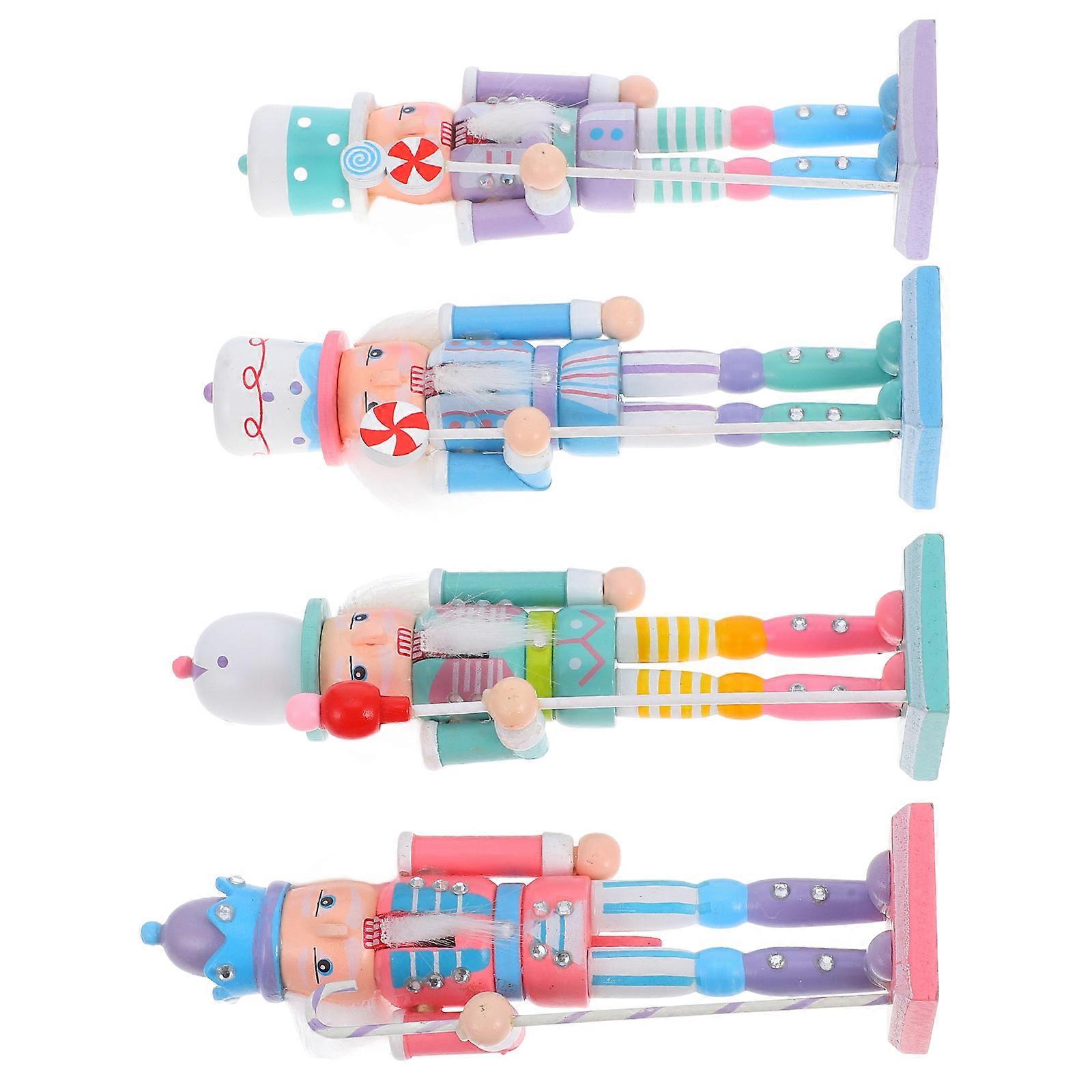 Christmas Nutcracker Figure Wood Nutcracker Craft 4Pcs for Desktop Decor