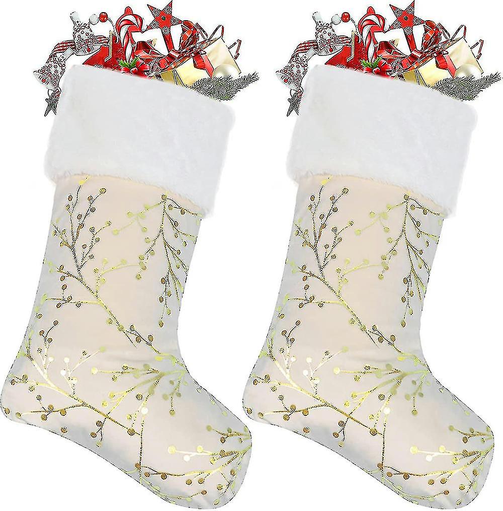 Christmas Stocking Set Of 2 Large 22 Inch Xmas Sock Sack Candy Pouch Bag Bronzing Branch Pattern With Plush Design For Home Party Decorations 2pcs Hl
