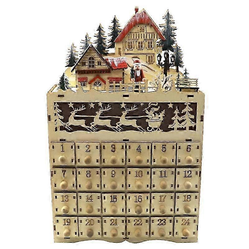 Christmas Wooden Advent Calendar LED Lighted Village House Countdown Drawer Box