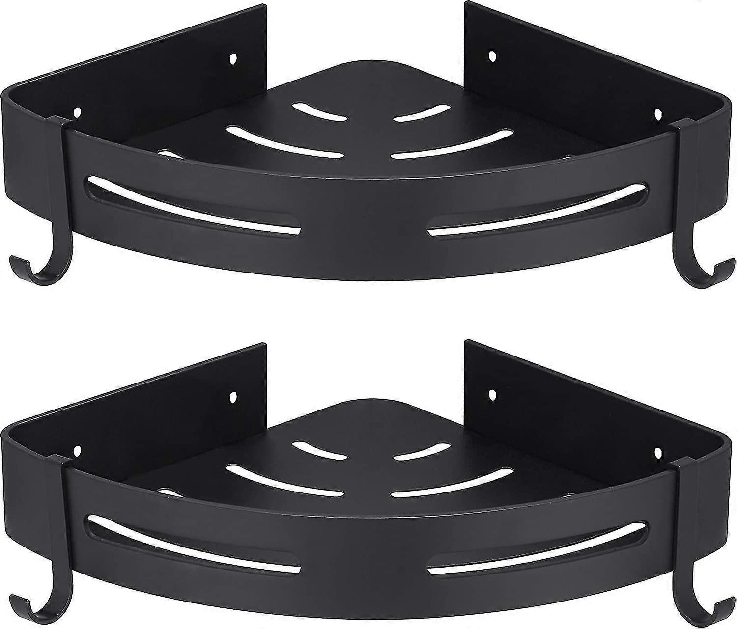 corner shower shelf black without drilling bathroom storage shower soap holder,no rust proof aluminum set of 2 with hooks
